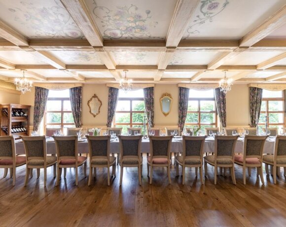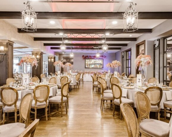 Jedna z naszych głównych sal restauracyjnych. Idealna na bardziej kameralne, eleganckie wesele wśród ciemnego drewna, przy prostokątnych stołach. Jej wielkim atutem jest boczna Sala Kwiatowa, w której proponujemy ustawić słodki bufet lub strefę chillout. To piękna przestrzeń, którą urządzimy tak, jak chcecie.